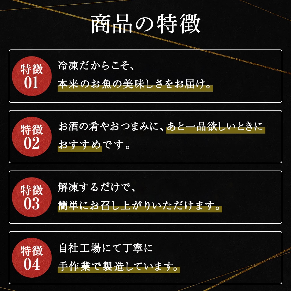 | 原材料名1 | サーモントラウト(香川県産)、発酵調味料、醤油、砂糖、粉末調味料〔澱粉、糖類(粉末水飴)、発酵調味料〕、食塩、(一部にさけ・小麦・大豆を含む) |