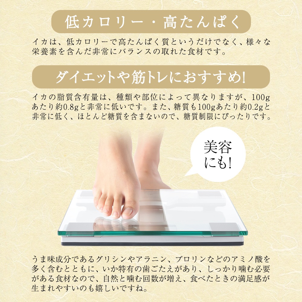 | 原材料名1 | いか(あおりいか(インド)、食塩)、衣(小麦粉、澱粉、食塩、粉末醤油、砂糖、脱脂粉乳、香辛料、大豆たん白、ブドウ糖、野菜ブイヨン粉末、酵母エキス粉末、植物たん白加水分解物、野菜エキス粉末)、植物油/調味料(アミノ酸)、(一部にいか・小麦・大豆・乳成分・鶏肉を含む) |