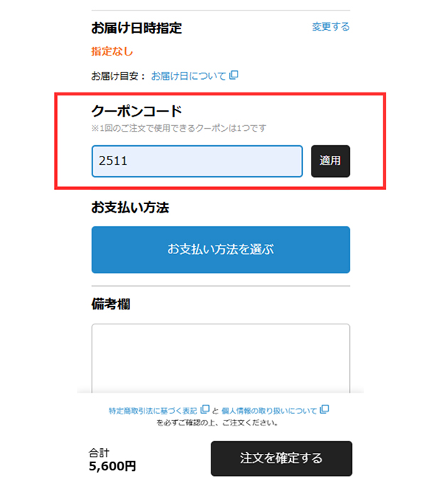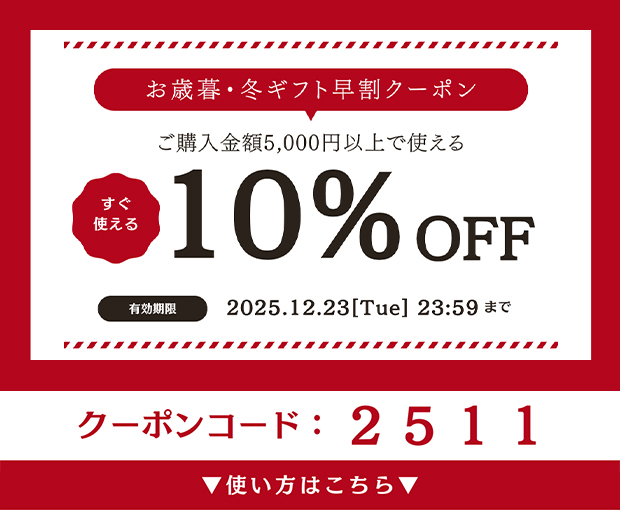 お歳暮特集掲載商品をカートに入れ、ご注文画面へ進んだらクーポンコードを入力するだけ!