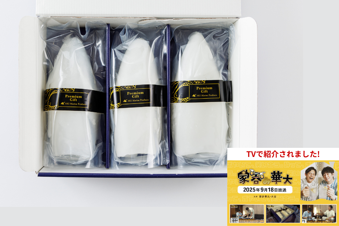 テレビでも紹介された「あおりいか3尾詰め合わせ」。