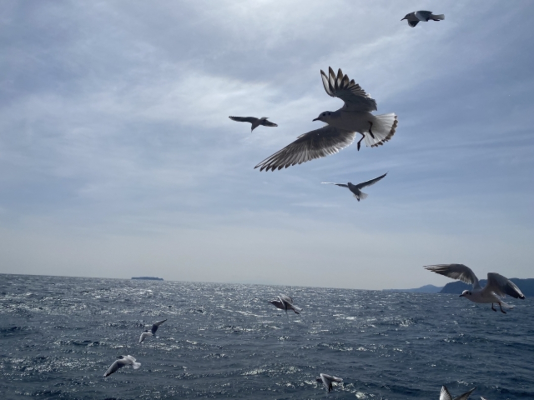 海面近くを泳ぐイカは、カモメやアホウドリなどの海鳥にも狙われます。